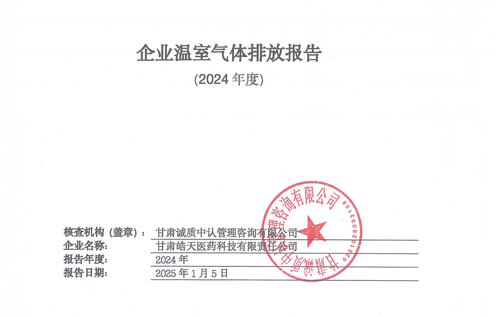 碳足跡核查報告--甘肅皓天醫(yī)藥科技有限責任公司
